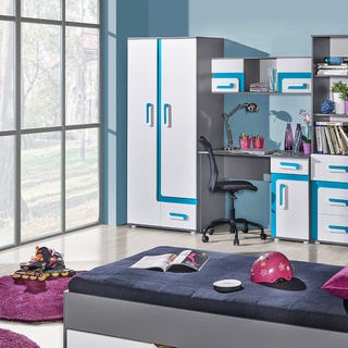 • Korpus: anthrazit + Front: weiß + Einsatz: blau