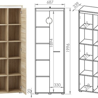 • Einsätze: weiß/anthrazit/Eiche sonoma hell