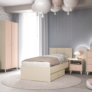 Bett mit Schublade MEVEL 08 90x200 cm Einzelbett mit gepolstertem Kopfteil