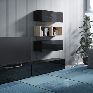 Hochglanzfronten in Schwarz und Weiß kombiniert garantieren Kontrast, und optional montierte Beleuchtung auf dem hängenden Fenster und der Kommode verleihen dem Ganzen einen einzigartigen Look.