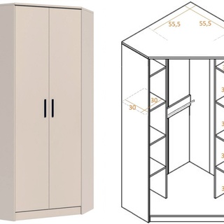Eck-Kleiderschrank-Set GRANT 36, Kleiderschrank und Regal mit Verlängerung, Schrank-Set mit Kommode