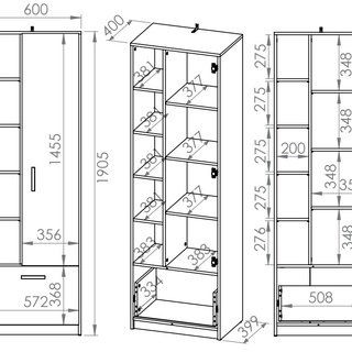 FINI 03 - ein Regal mit fünf offenen Fächern, vier geschlossenen Fächern und großer SchubIade. Bietet viel Stauraum für Bücher, Spielzeug sowie auch für Kleidung.