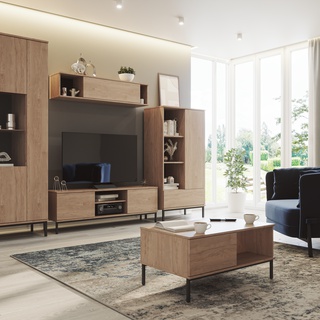 system składa się z: komody, witryny, regału, szafek rtv, ławy, półki - szafki wiszącej