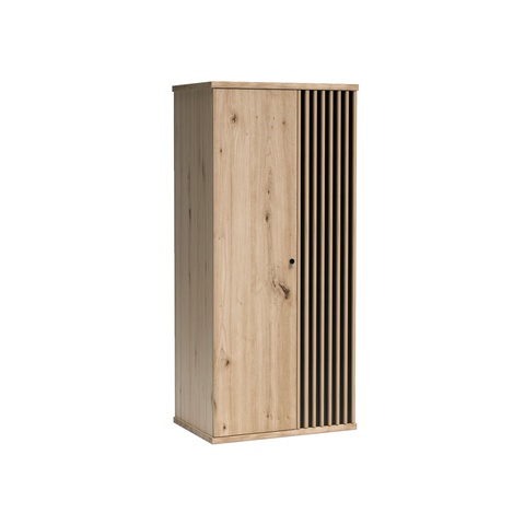 Interessantes Design, einzigartige Konstruktion mit der Verwendung einer Leiste als Griff, die für das ergonomische Öffnen von Schränken entsprechend schräg geschnitten wurde. Die warme, natürliche Farbgebung der Elemente passt zu fast jeder Einrichtung. Die Möbel sind in der Farbe Artisan gehalten und mit einer matten schwarzen Tafel versehen. Helle Latten auf dunklem Grund passen zum modernen Stil der Einrichtung. Dank dieser Kollektion können wir einen spektakulären Effekt im Wohnzimmer erzielen, vor allem an der TV-Wand, wo wir das Wandpaneel mit dekorativen Lamellen verwenden können.Die Möbel können dank der soliden, 10 cm hohen Metallfüße hochgezogen werden, was es uns ermöglicht, das Haus sauber zu halten.